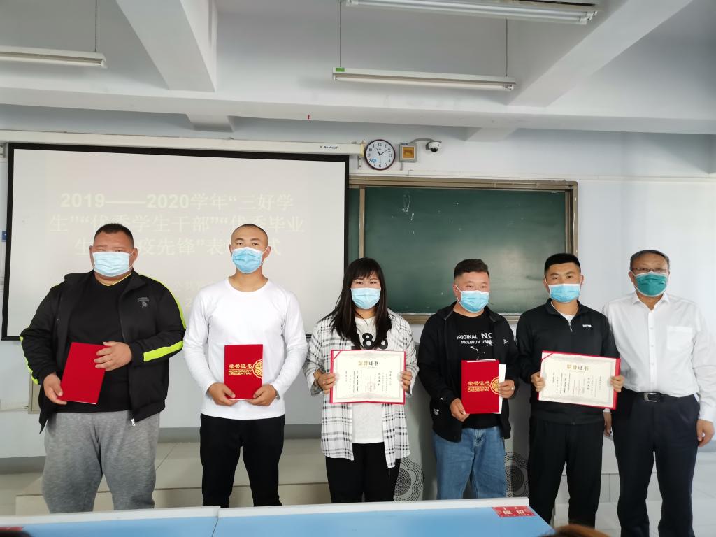 为学习贯彻习近平新时代中国特色社会主义思想和党的十九届四中全会精神,深入贯彻落实全国高校思想政治工作会议精神和全国教育大会精神,树立大学生先进典型,充分发挥榜样示范作用,鼓励广大学生勤奋学习、积极进取、成才报国,经学校研究决定,在2020届毕业生顺利返校之际,于6月2日上午表彰了公共管理学院2019——2020学年“三好学生”“优秀学生干部”“优秀团干部”“优秀毕业生”和积极参加抗疫活动的“抗议先锋”。会议由党总支副书记额尔敦格日勒主持,学院领导和受表彰的毕业生共人参加会议。会上,学工办副主任宝连宣读了各项表彰决定,党总支书记海霞、院长吴宝山为受表彰学生颁发了荣誉证书。最后院长吴宝山讲话,勉励获奖学生希望同学们再接再厉,继续发扬艰苦奋斗的精神,在新环境新岗位上取得更优异的成绩。