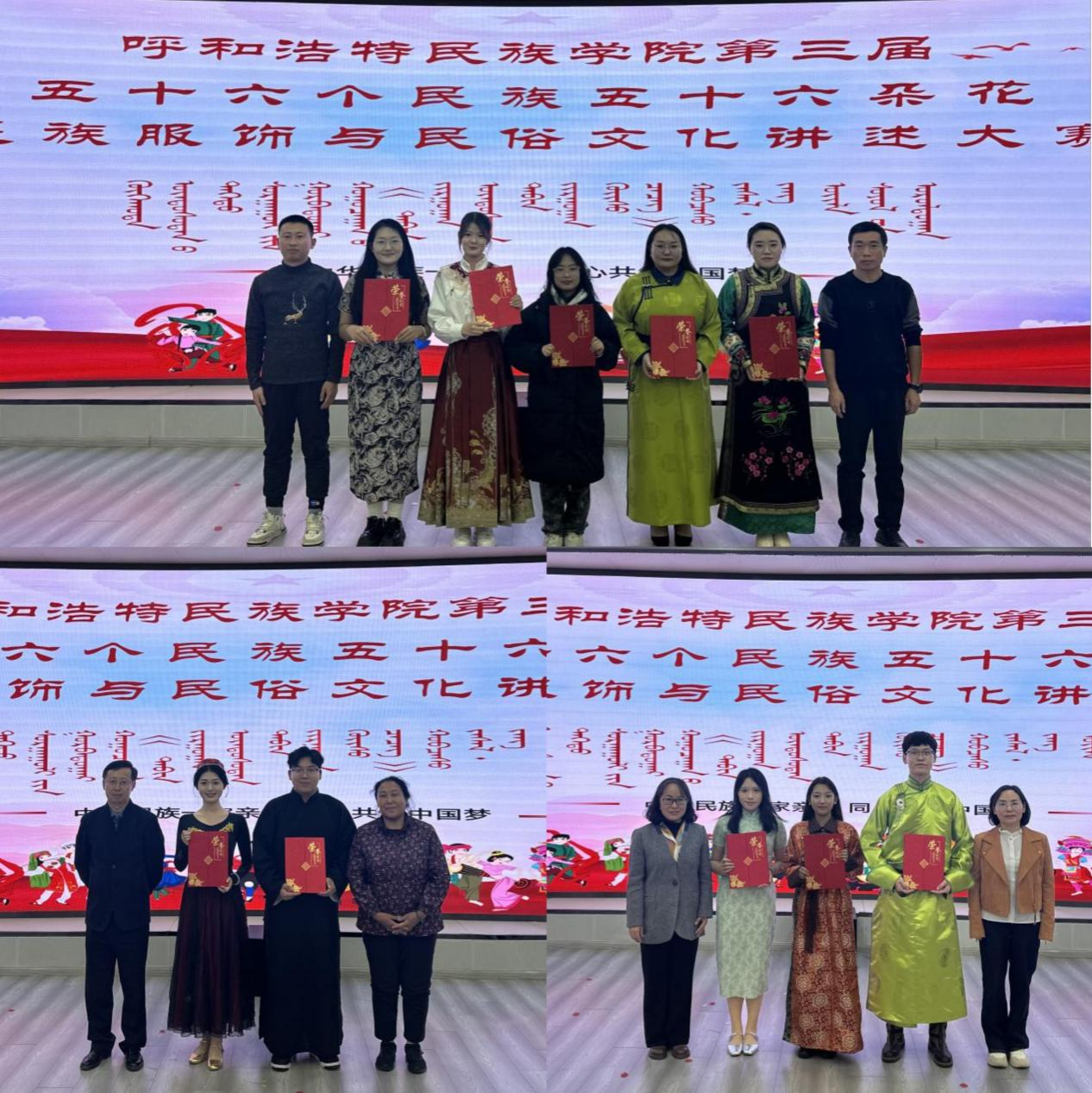 大赛的评委团由管理学院、新闻传媒学院及民族学学院的5位资深教师组成,全校五个学院参与比赛,讲述了汉族、蒙古族、满族等11个民族的服饰文化及其风俗习惯。展示内容包含详尽的文字描述、精美的图片、视频资料及现场走秀环节,以创意呈现的方式展现了各民族服饰的华美与特色。