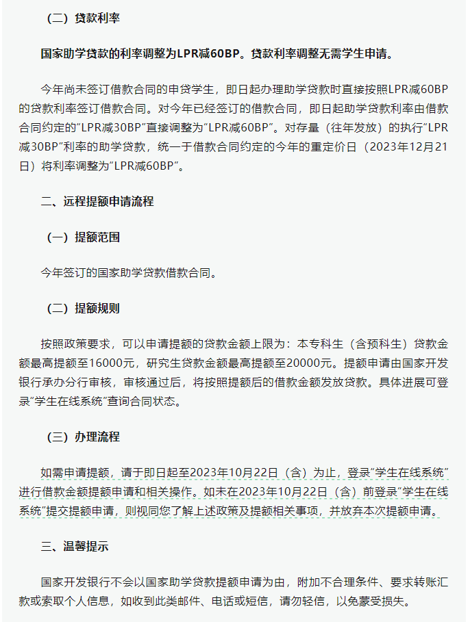 转发《国家开发银行承办的国家助学贷款额度提升和利率调整的公告》