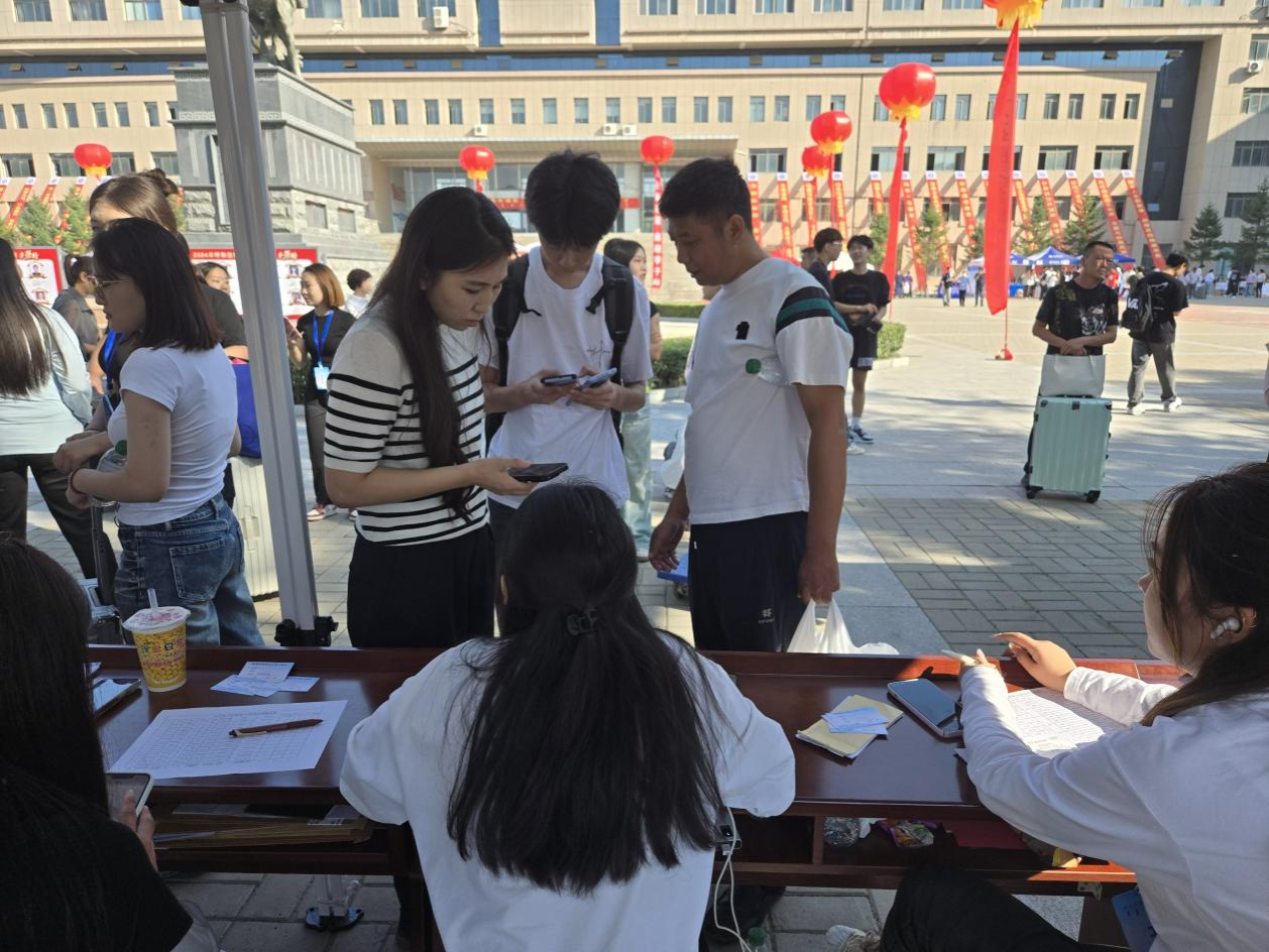 晨光微熹,整个校园洋溢着喜庆欢乐的气氛。学院迎新接待处搭好帐篷,挂起横幅,清点物资,各项工作准备就绪,迎新工作全面开展。