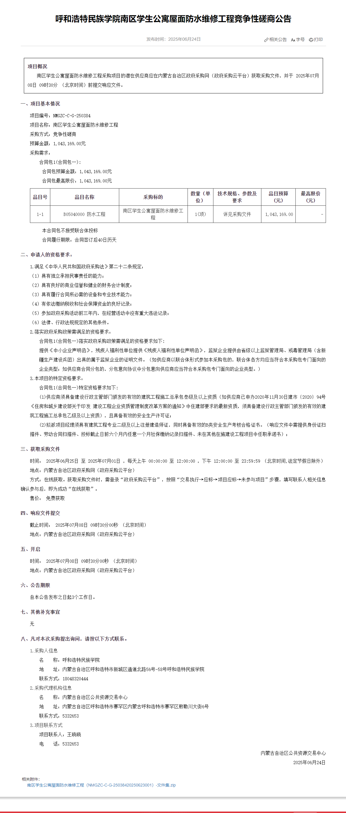 365英国上市公司南区学生公寓屋面防水维修工程竞争性磋商公告