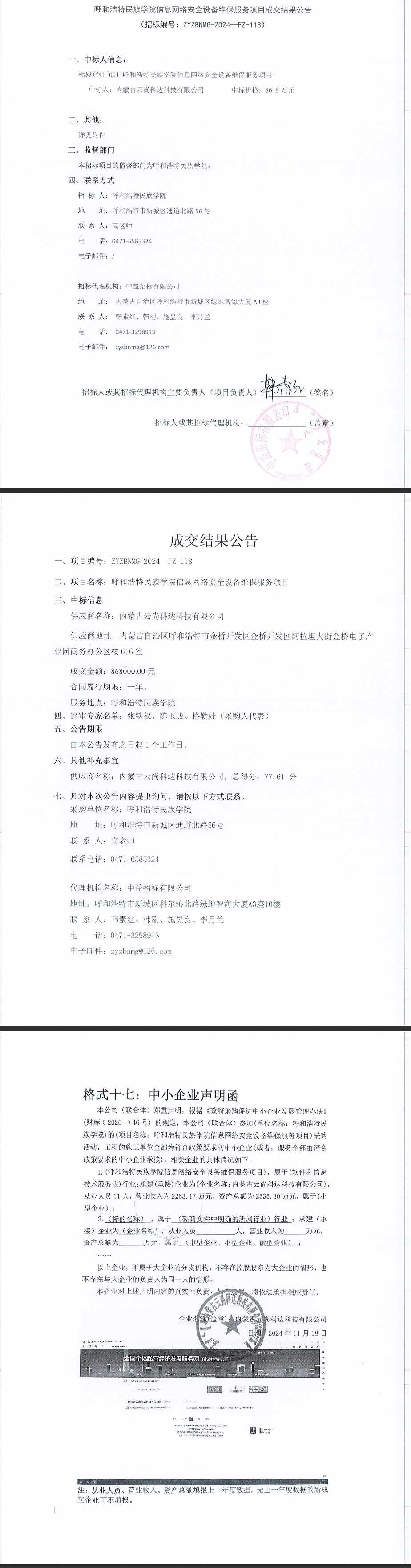 365英国上市公司信息网络安全设备维保服务项目成交结果公告