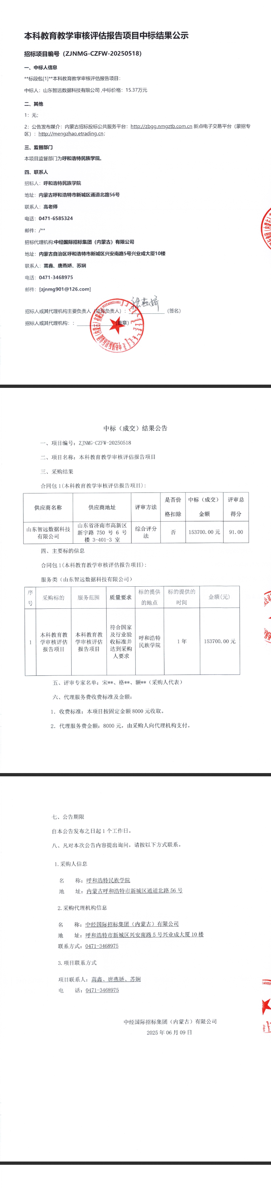 本科教育教学审核评估报告项目中标结果公示