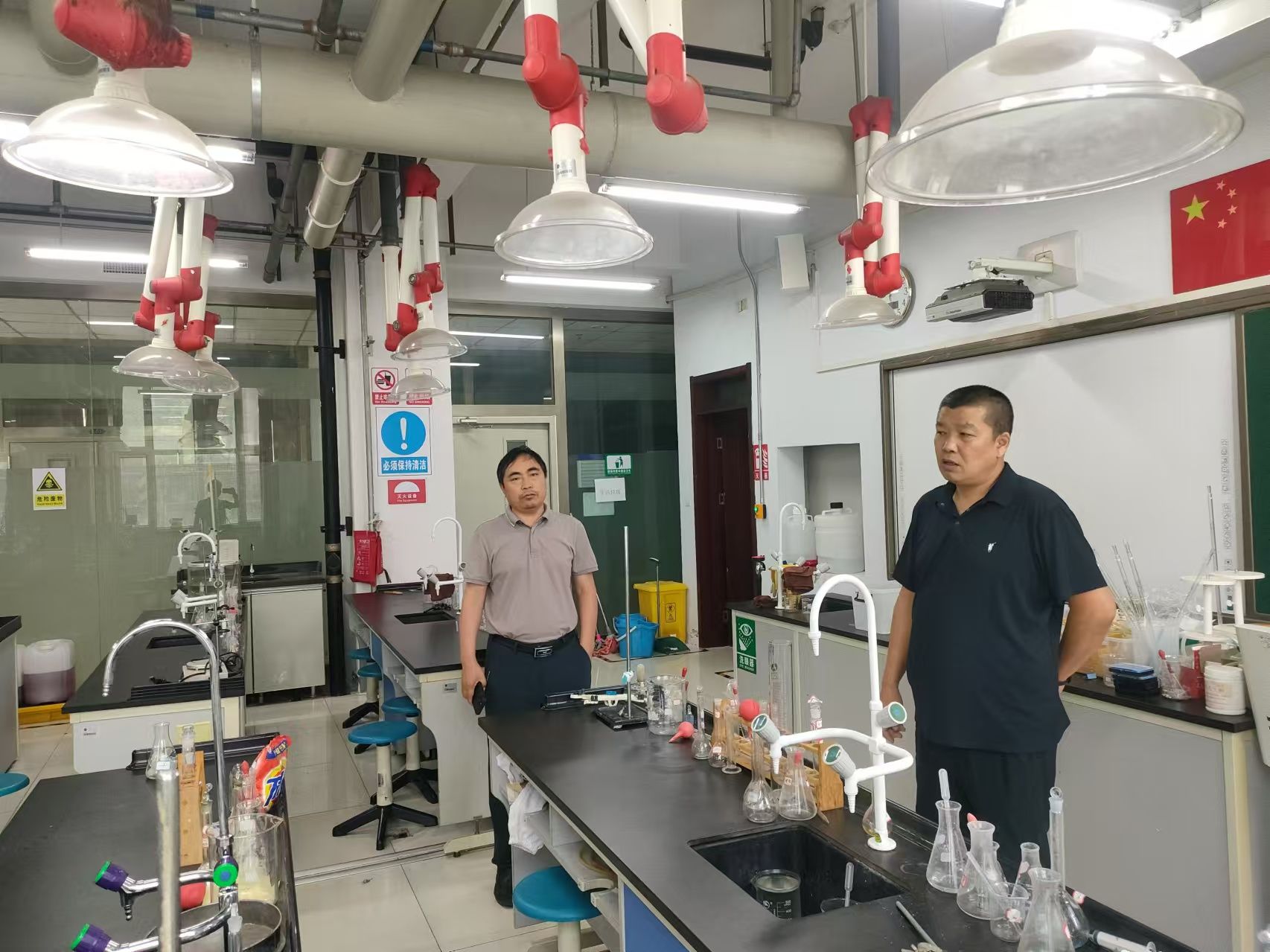 在暑假临近之际,为确保实验室安全稳定运行,7月3日,化学与环境工程学院党总支书记鄂亚彬、院长李福全带领实验室负责教师对实验室进行了深入细致的安全检查。此次检查重点针对实验室近期进行的改造工作,鉴于改造过程中可能存在的安全风险,学院领导高度重视,对实验室的每一个环节进行了认真检测,确保各项安全措施落实到位。