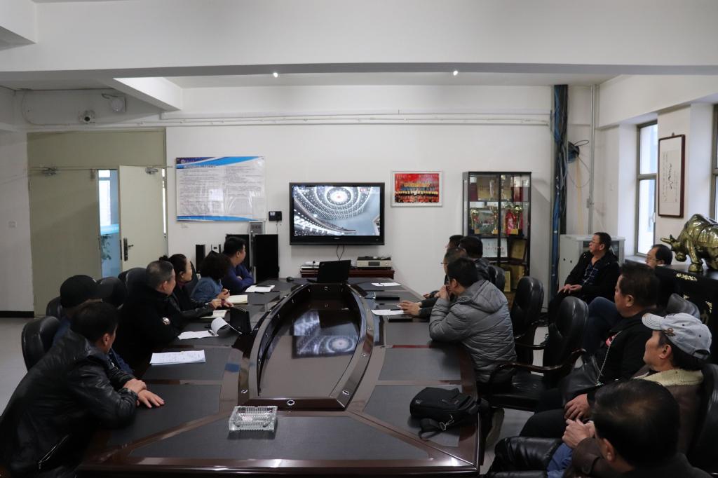 2019年3月5日上午9点,后勤管理处党总支书记楚长利组织全体职工在后勤管理处二楼会议室。认真观看电视直播《2019年全国“两会”》聆听李克强总理政府工作报告。