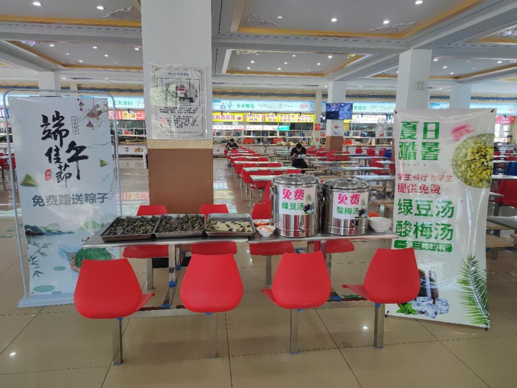 为大力弘扬中华民族传统文化,在端午佳节期间,学校后勤管理处餐饮服务中心全体职工于6月22日开展“粽情端午”活动,为学生免费提供粽子、凉糕、绿豆汤和酸梅汤。