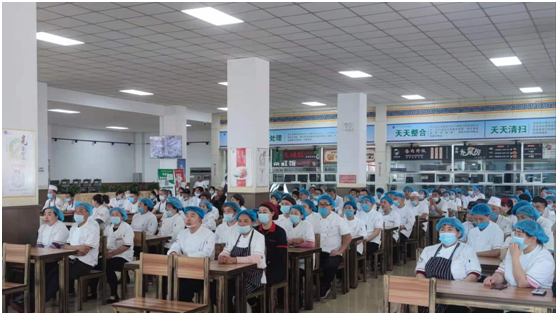 为加强学校食品安全管理工作,保障广大师生饮食安全,严防严管严控校园食品安全风险。4月30日下午,在学校南院食堂三楼开展食品安全管理培训班。餐饮中心特邀请呼和浩特市新城区市场监管局海东所两名专家,为南北院餐饮从业人员进行食品安全培训。