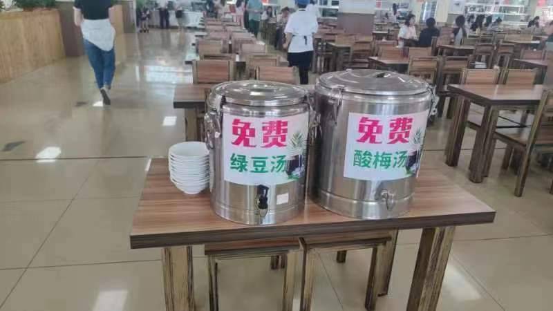 天气逐渐炎热,伴有连续的高温,为了做好防暑工作,更好地服务学校广大师生。学校后勤管理处餐饮服务中心全体员工为表达对师生的关心,帮助师生抵抗高温,6月6日开始,学校南、北食堂每一个楼层为师生们免费提供绿豆汤和酸梅汤饮用。在这炎炎夏日带给师生们一丝“清凉”和满满的爱意。
