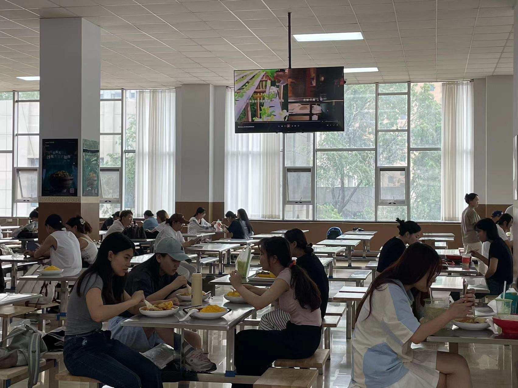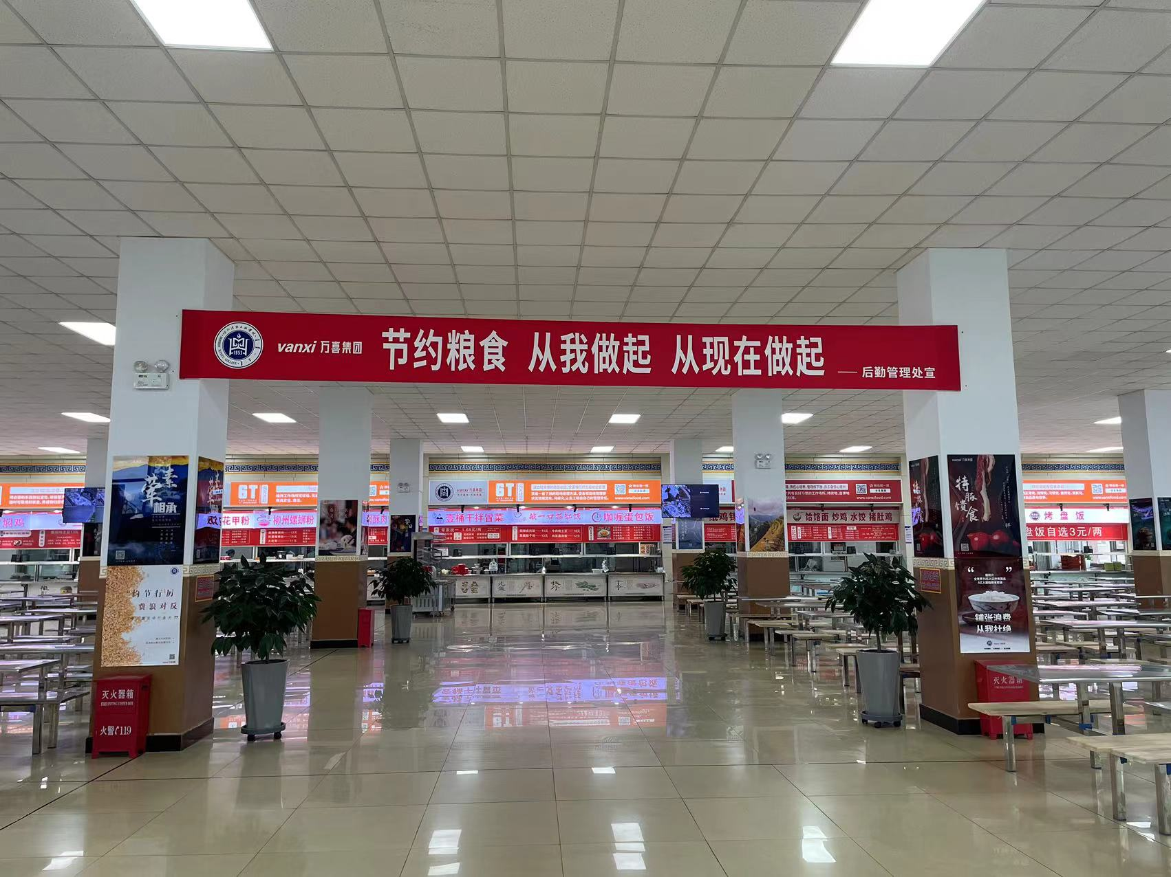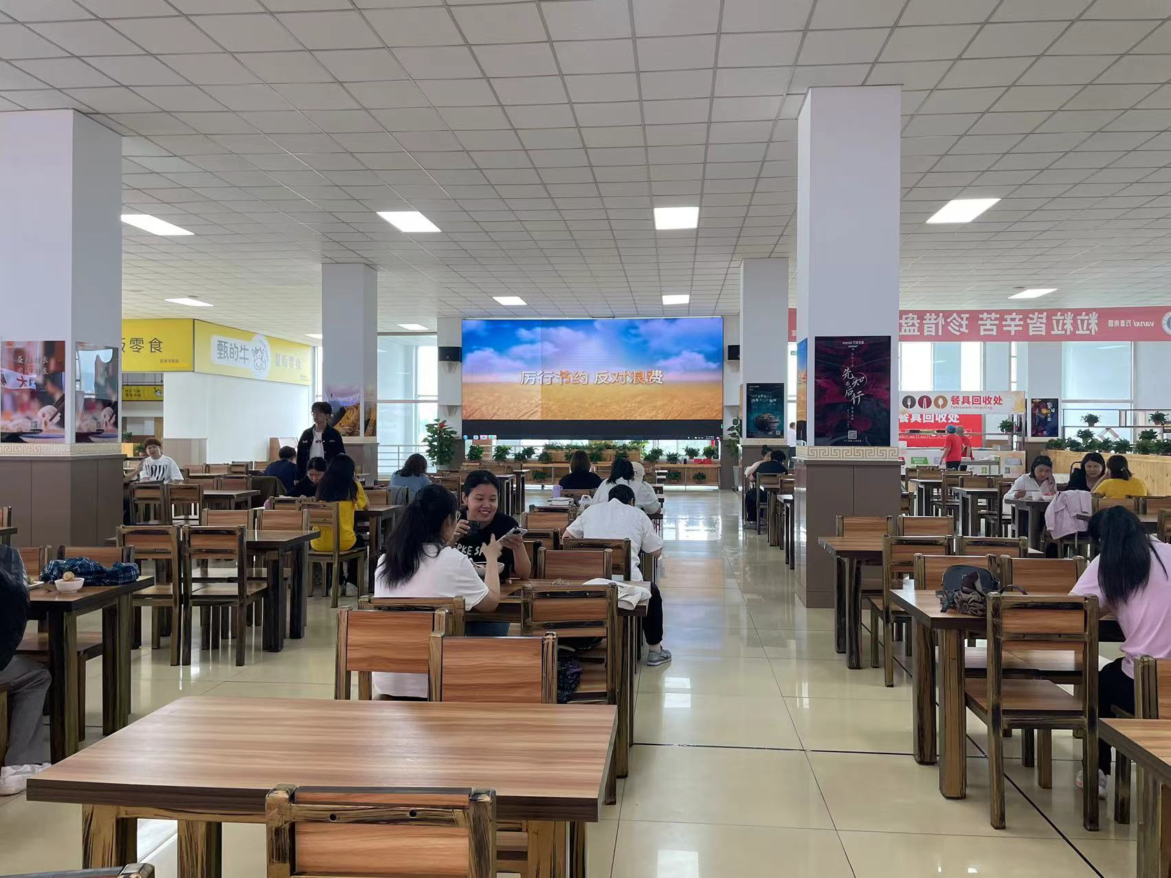 为扩大活动影响力,在餐厅各个就餐楼层醒目位置张贴横幅,在餐厅入口处设置光盘行动海报,以图文并茂的形式向师生传递节约粮食的重要信息。同时,还利用餐厅内的电视电子屏设备循环播放节约粮食的宣传视频,让师生在用餐过程中不断加深对节约理念的理解和认同。