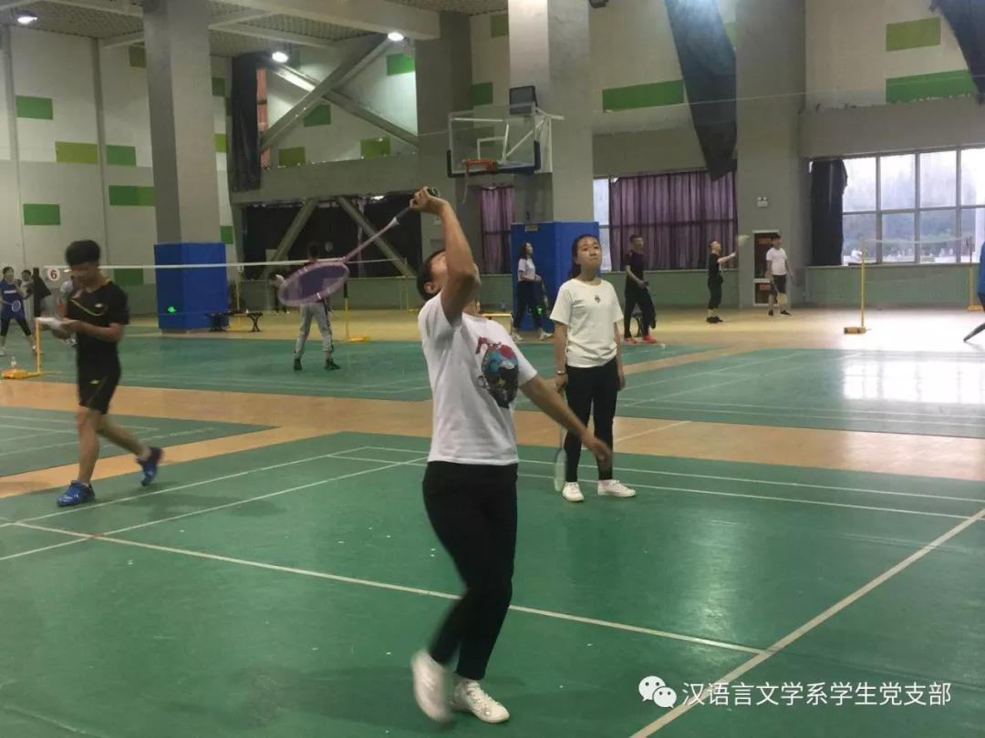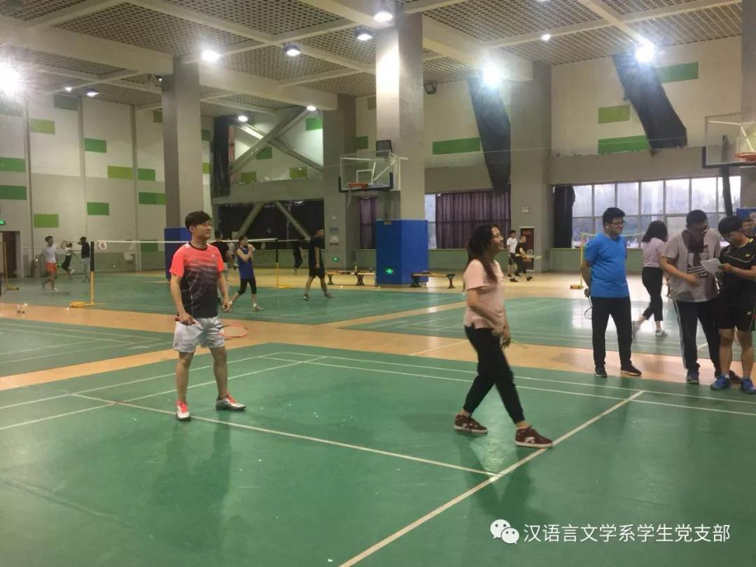 在毕业季来临之际,汉语言文学系学生党支部为了欢送2014级毕业生党员,为了让同学们记住在支部度过的美好时光,于2018年5月17日晚在365英国上市公司体育馆一楼羽毛球场举行了羽毛球比赛,本场比赛在老师同学们的精心准备下激烈展开。学生支部书记张子涵老师及全体学生党员参加了比赛。