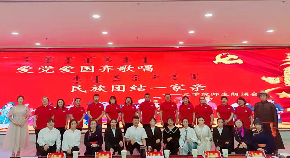 值此建党100周年、中华人民共和国成立72周年之际,文学院结合学校第38个民族团结进步活动月以及“我和我的祖国”主题宣传教育活动,为在师生中根植爱国主义情怀、培养全体师生铸牢中华民族共同体意识,进一步深入开展民族团结创建活动,文学院于10月11日晚7时,在图书馆一楼报告厅举办了“爱党爱国齐歌唱,民族团结一家亲”师生朗诵会。文学院全体教师及各班学生代表参加朗诵会。