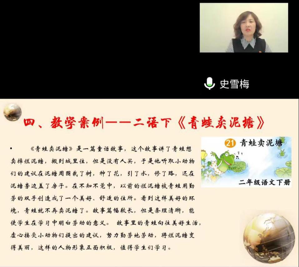 我院邀请国家级研学专家库成员、呼和浩特市优秀青年校长研修成员、呼和浩特市回民区海西路小学校长、语文高级教师史雪梅老师,做了题为“新课标视域下的教学研共同体建设暨语文课例解析——寄语未来的人民教师”的专题讲座。讲座基于对小学语文新课标内容的阐释,突出了新课标体现的新理念,帮助同学们进一步树立了新时代语文教育的新理念;以“如何开展跨学科主题学习”这一问题为导向,阐释了学科融合的意义、内容与方法,开拓了同学们关于小学语文学科教学的新思维;结合二年级语文下册《青蛙卖泥塘》的生动教学案例,让同学们对当今小学语文课堂教学有了新认识。为即将进入教师角色的同学们提供了具有指导价值和实践意义的丰富内容。