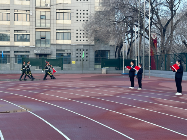 在庄严的国歌声中,五星红旗冉冉升起,迎风飘扬。同学们肃立注目,表达对祖国的无限热爱和崇高敬意。随后由学生代表做国旗下演讲,讲述了升旗仪式的重要性和深刻涵义。
