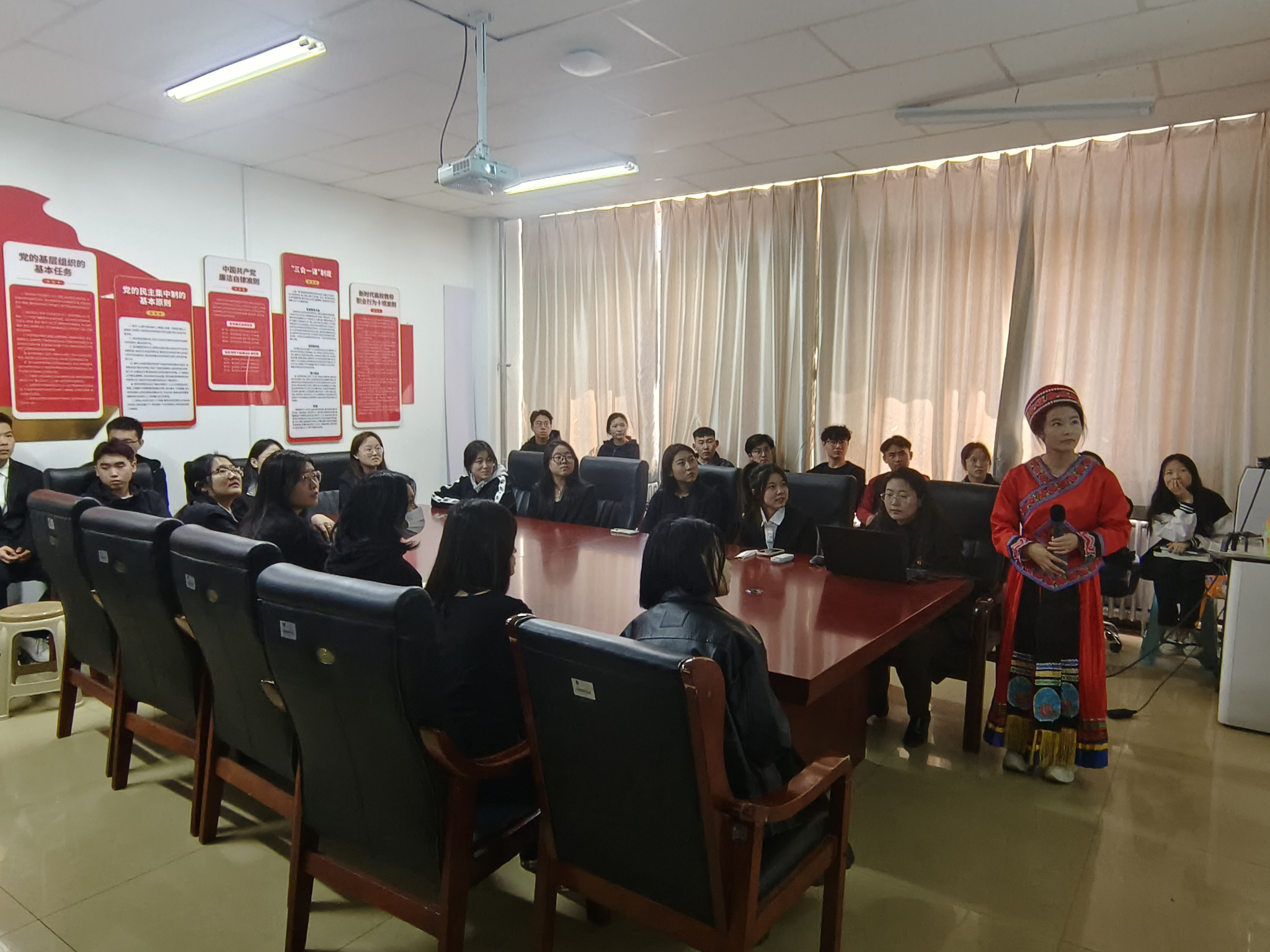 为勉励广大青年坚定不移感党恩、听党话、跟党走,将铸牢中华民族共同体意识内化于心,增强青年学生爱国主义情怀,传承革命先烈遗志,4月3日上午10时,文学院组织在校学生党员、团员和青年共40人开展“民族精神代代传 故乡英雄知多少”清明祭英烈主题活动,活动由团总支书记刘晓主持。
