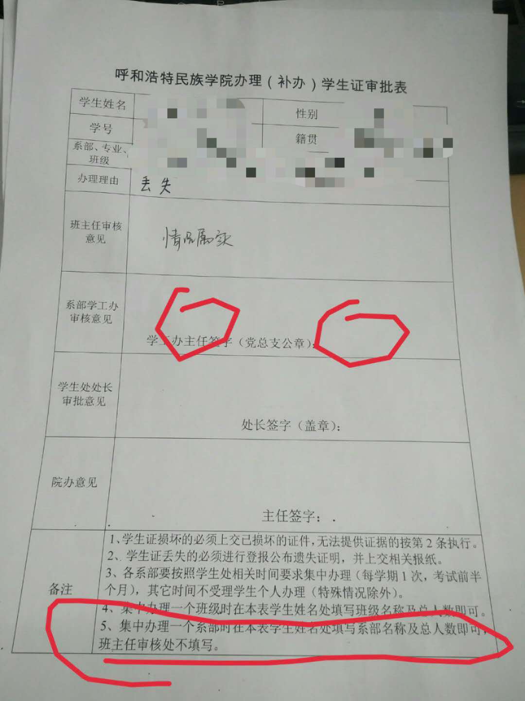 2.需要填写学生证补办基础信息表,同时附上1寸蓝底电子照片(以自己的学号命名)。交给系内相关负责人,具体负责人请以每学期通知为准。