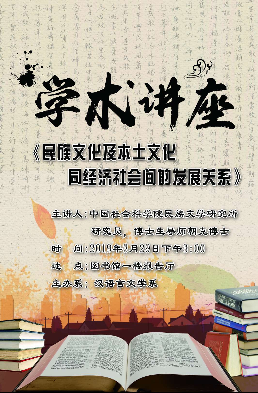 《民族文化及本土文化同社会经济发展的发展关系》学术讲座通知