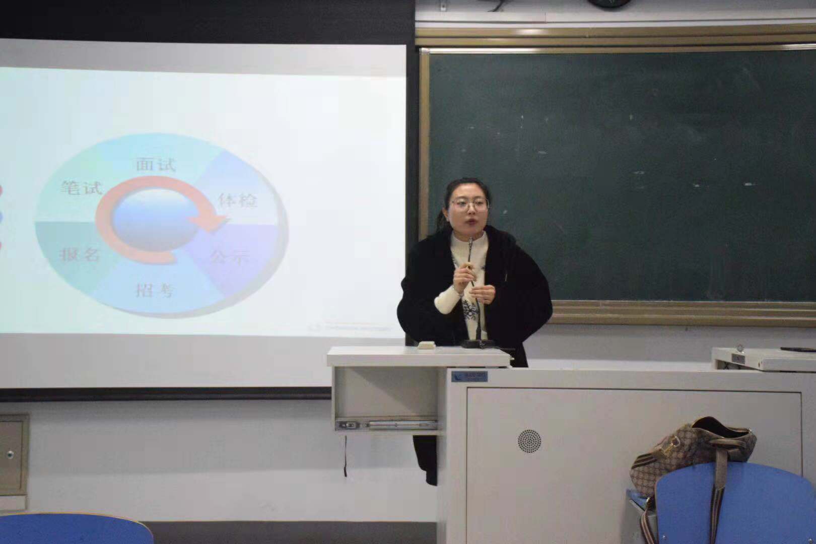 本次分享会由汉语言文学系辅导员雷娜庆老师、刘晓老师主讲。她们在会上分享了自身求学和求职经历,并强调:一、明确目标。应根据自身情况对考研、公考、就业或创业有明确方向;二、着手准备。根据目标搜集相关信息,如关注公众号,了解公考信息、报考院校招生信息;打造特色简历,积极参与学校和院系举办的招聘会。