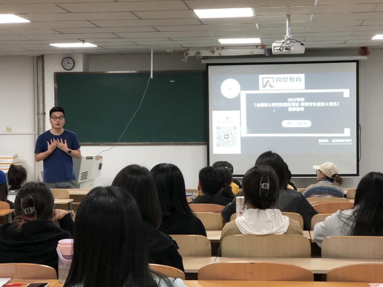 为进一步做好考研同学的指导服务工作,帮助学生充分了解考研相关政策,明确报考目标、掌握考研方法、增强考研信心,9月22日,教务处在尚智楼214教室举办了考研指导专题讲座。讲座由北京芝士帮教育科技有限公司联合创始人、考研规划师冯浩老师主讲,学校考研辅导班的100余名同学参加。讲座由教务处副处长额日德木图主持。