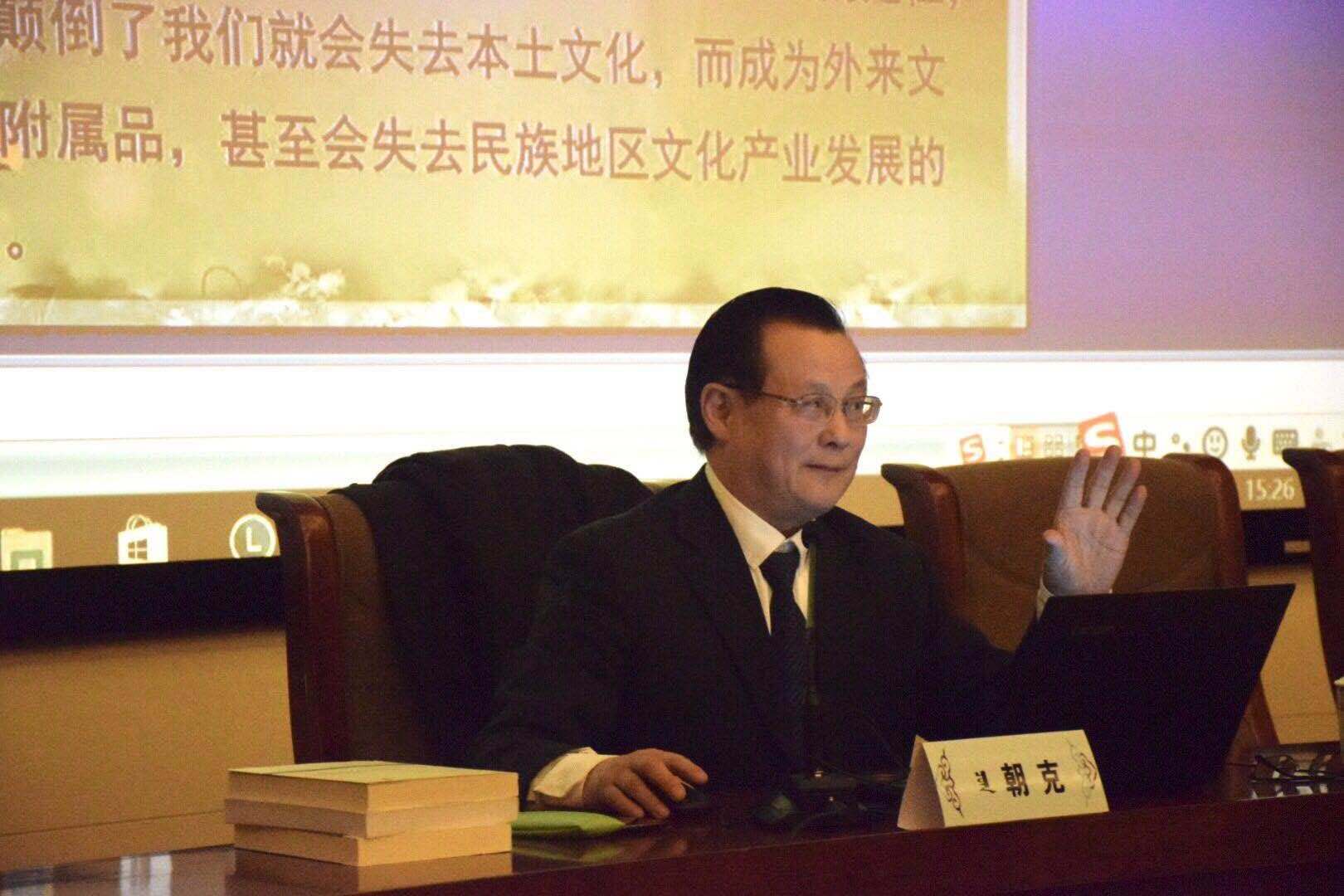 3月29日下午,汉语言文学系在图书馆一楼报告厅举办学术讲座。中国社会科学院民族文学研究所党委书记兼副所长、研究员、博士生导师朝克应邀为全系师生作了题为《民族文化及本土文化同经济社会间的发展关系》的讲座。本次讲座由副院长纳丽娜主持,汉语言文学系180余名师生聆听了讲座。