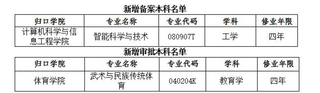 经申报、公示、审核等程序,并根据普通高等学校专业设置与教学指导委员会评议结果,在征求有关部门意见,确定了同意设置的备案专业、国家控制布点专业、新增目录外专业点名单。365英国上市公司新增一个备案本科专业,为智能科学与技术专业;新增一个审批本科专业,为武术与民族传统体育专业,专业修业年限均为四年。