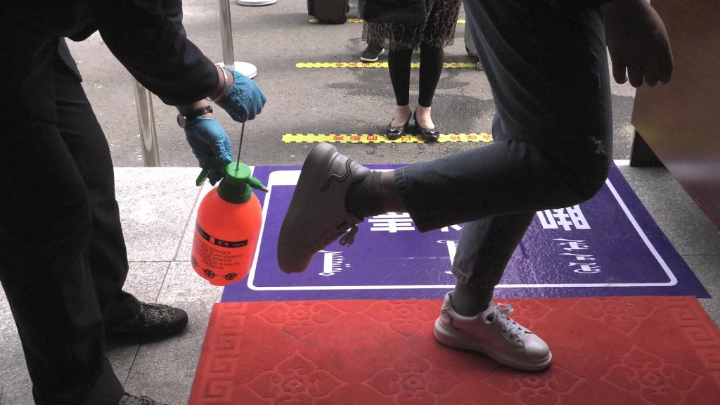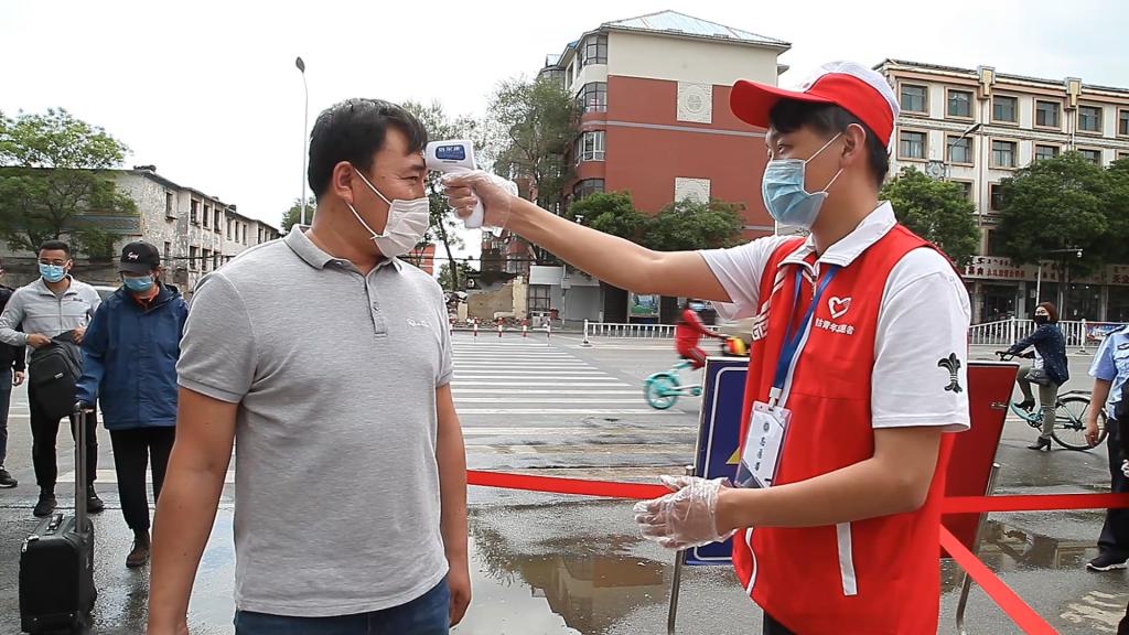 引导体温异常人员前往临时观察点进行体温复测、消毒及流行病学观察