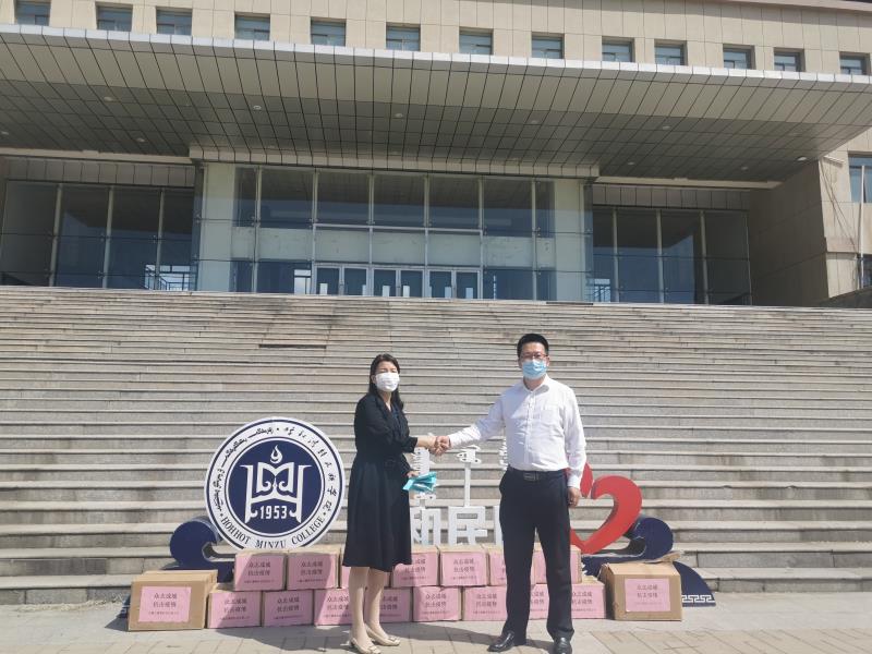 5月19日上午,365英国上市公司毕业生就业实训合作企业,内蒙古蒙教科技有限公司副总经理韩继星一行到学校捐赠防疫物资。捐赠一次性防护口罩1000个,消毒液30箱(300瓶)。副校长纳丽娜代表学校接受物资捐助。