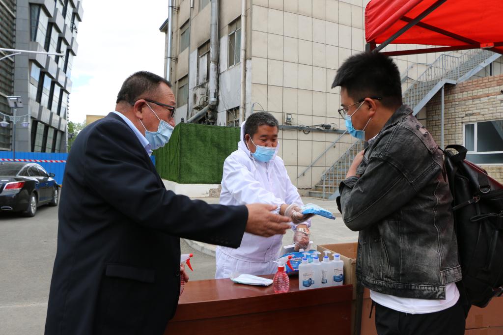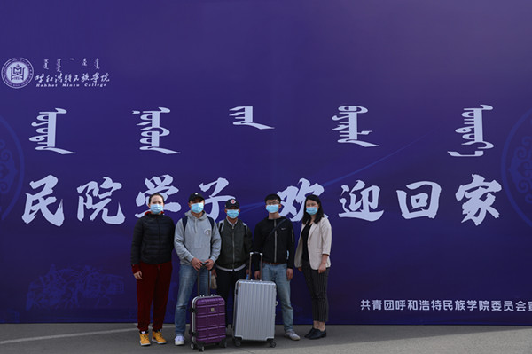 学校在呼和浩特市白塔机场和火车东站设置了接站点,12位老师全天接送每一位返校学生。老师接到学生后,组织学生经行李消杀,体温监测,足底消杀,按“Z”型间隔就座,乘校车返校。