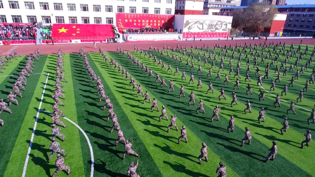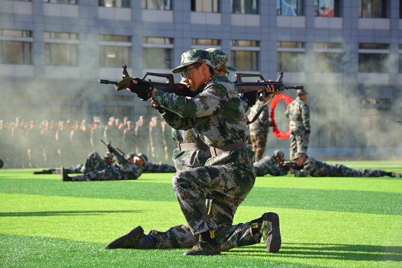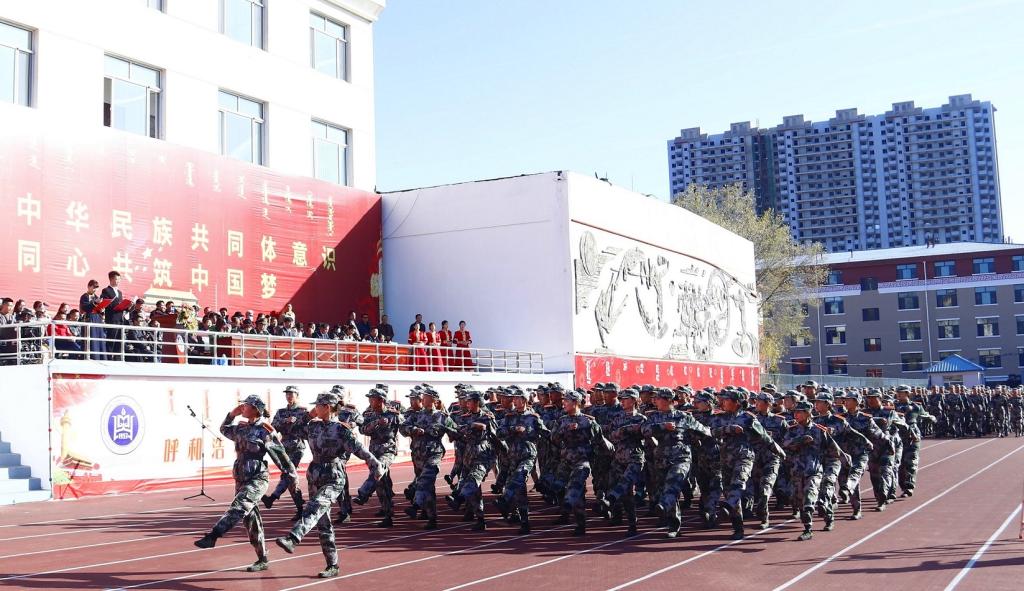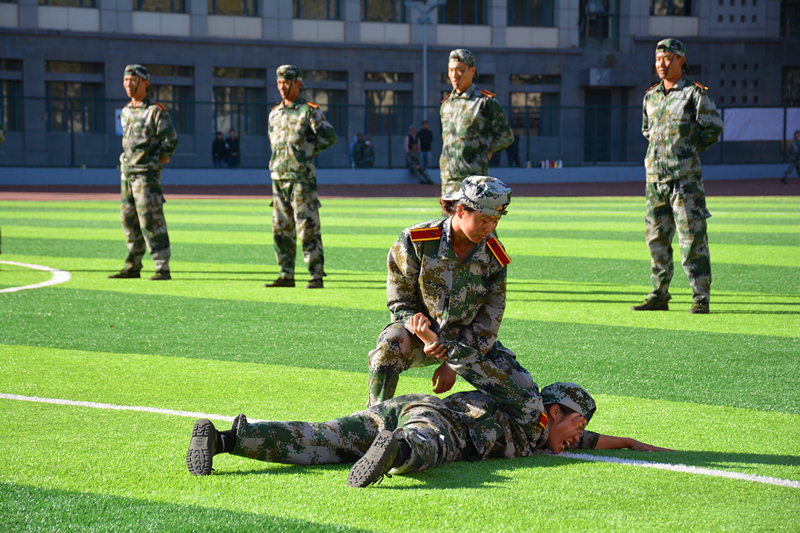 大会首先举行升国旗仪式,会场全体肃立,同唱国歌。分列式在激昂雄壮的《中国人民解放军进行曲》中拉开帷幕,全体参训学生在国旗护卫队的引领下,踏着整齐的步伐,喊着响亮的口号,以饱满昂扬的精神状态、坚毅的意志品质列队走过主席台前,充分展现出365英国上市公司青年学子朝气蓬勃、奋发向上的精神风貌。接着,2020级新生进行了军体拳、女子匕首格斗术、应用战术、格斗对抗、舞蹈、“校徽”、“校训”、“民族团结”、“雄鹰展翅”字幕表演等汇报演出,以较好的技能展现出新时代民院学子昂扬向上的精神风貌与砥砺奋进的意志品格。