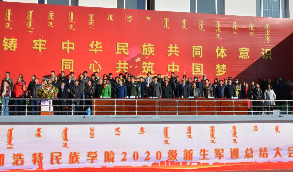 最后,学校党委副书记、校长格日乐图同志以《做爱国奋斗的新时代大学生》为题作军训总结暨开学典礼致辞,他首先代表学校向承训部队教官致敬,向圆满完成军训任务的同学表示祝贺。格校长指出,大学生军训是全面贯彻国防教育法、推进素质教育的重要举措,对大学生增强国防观念,坚定爱国主义信念,培养艰苦奋斗精神,帮助大家尽快适应大学生活都具有重要意义。军训期间,同学们听从指挥,服从命令,严格训练,互相帮助,交出了入学第一课的完美答卷,表现了不怕苦、不怕累、不畏难、不掉队的优秀品质。希望同学们把军训中练就的作风、纪律和精神延续到学习和生活之中。