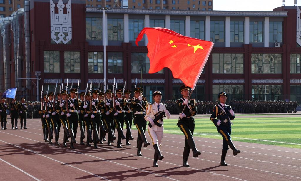 国旗护卫队引领各连队进行分列式
