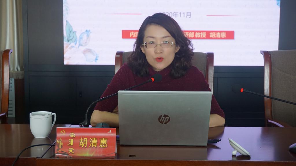会上,胡清惠老师以“坚持中国特色解决民族问题的正确道路,铸牢中华民族共同体意识”为题,把习近平总书记关于民族工作的重要论述贯穿全过程,以铸牢中华民族共同体意识为主线,从“民族问题和民族工作怎么看”和“新时代民族工作怎么干”两个方面,深入阐述中华民族多元一体发展史,深刻阐明如何做好新时代民族工作,理论联系实际,为与会者作了脉络详实、内涵丰富的精彩辅导。