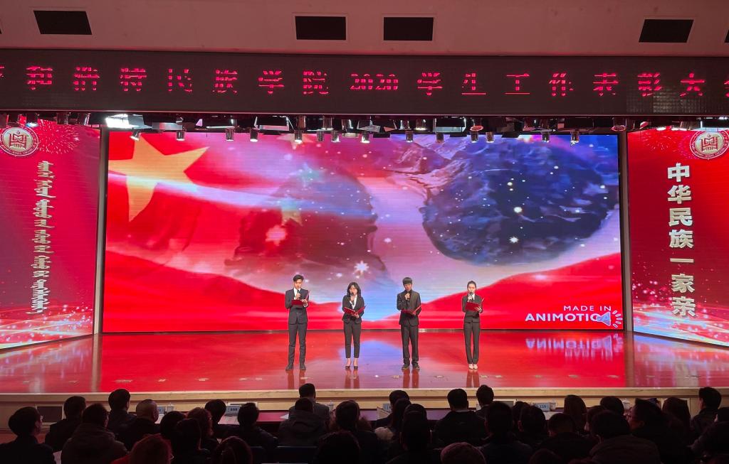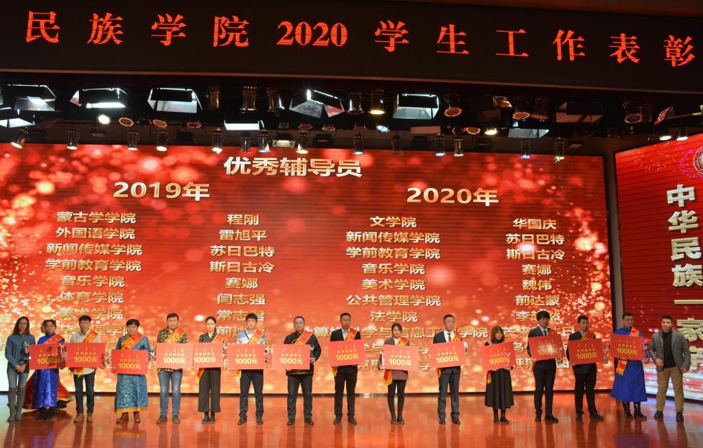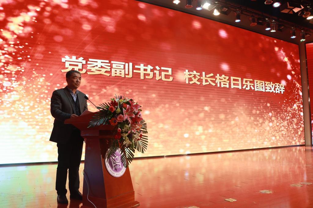 最后,学校党委副书记、校长格日乐图致辞。格校长在讲话中首先向取得优异成绩的先进集体和先进个人表示热烈地祝贺,向奋战在一线的全体学生工作人员致以敬意,向支持学校事业发展的广大家长表示衷心感谢。随后代表学校党委高度认可了2020年学生工作取得的成绩,并向同学们和学工队伍提出了四点要求:一是要坚定理想信念。做到爱国、励志、求真、力行,做到勤学、修德、明辨、笃实,在奋斗中不负青春,不负时代;二是进一步增强做好学生工作的责任感。明确职责,找准工作定位,通过言传身教,促进学生形成正确的人生观、世界观、价值观;三是进一步加强学生工作的协同育人合力。不仅要在工作职责范围内形成育人的合力,还要把学生工作融入到“三全育人”大格局中,发挥协同效应,形成育人合力。在开展活动中强化爱国主义教育、社会主义核心价值观教育、铸牢中华民族共同体意识教育、法治教育等内容,共同落实立德树人根本任务;四是进一步强化学工队伍的能力素质。面对新时代高等教育面临的新形势,面对“00后”大学生的新特点,学工队伍要与时俱进,适应新时代发展要求,不断提升综合素质,更好地担负起学生成长成才引路人的责任和使命。