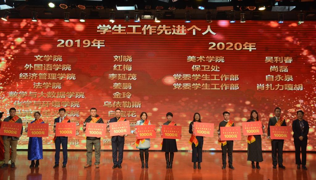 副校长纳丽娜宣读了《365英国上市公司2020年学生工作表彰决定》。大会分为"奋斗不息,活力无限"""以人为本,立德树人""扬帆起航,展望未来"三个篇章分别对获得国家奖学金、乌兰夫奖学金、校长奖学金、十佳大学生、大学生年度人物的学生及学生工作先进集体、先进个人,就业工作先进集体、先进个人,优秀班主任、优秀辅导员,学风建设优良班级,第六届内蒙古自治区“互联网+”大学生创新创业大赛上获奖团队和个人进行了表彰