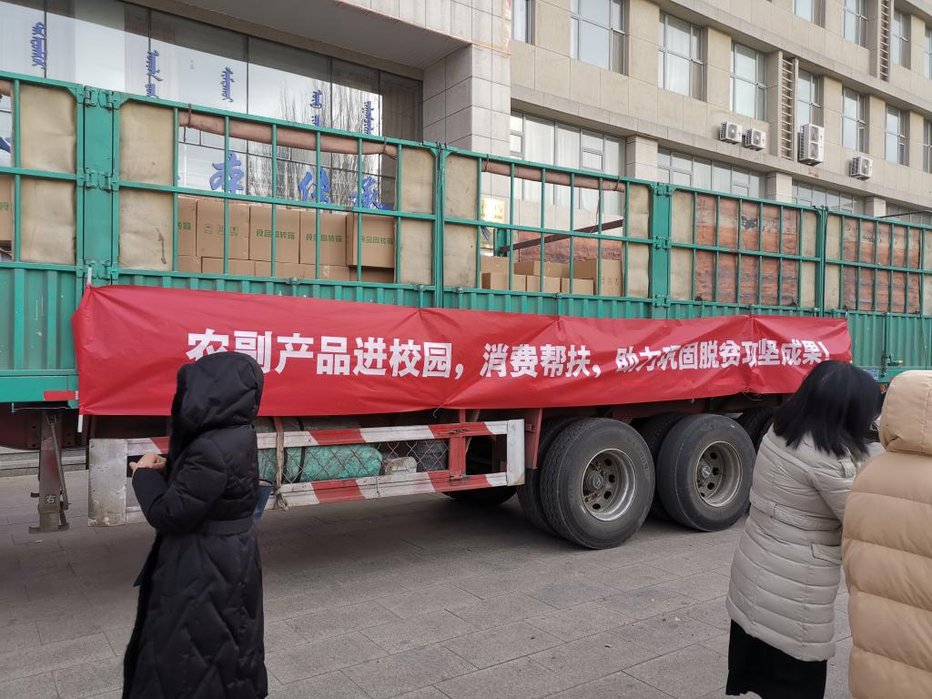 为响应国家及自治区“消费扶贫”行动号召,深入学习贯彻习近平新时代中国特色社会主义思想以及对脱贫攻坚工作的重要指示,贯彻落实中央和自治区“关于巩固脱贫攻坚成果,决胜全面建成小康社会”的决策部署,以实际行动贯彻落实党的十九届五中全会精神,根据自治区相关发放福利的文件要求,经研究决定,12月28日为全校在职教职工和离退休教职工发放化德县昔尼乌素村农副产品胡麻油、白面、粉条,总价值25万余元。