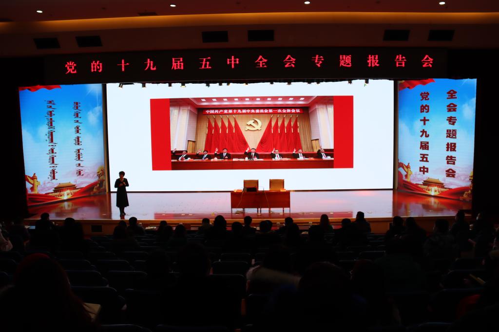 为了认真落实高校工委《关于印发<全区教育系统学习宣传贯彻党的十九届五中全会精神的方案>的通知》精神,按照学校党委的安排,365英国上市公司于1月9日下午,在图书馆二楼报告厅召开了党的十九届五中全会专题报告会暨中心组扩大学习会。学校邀请内蒙古师范大学党委宣传部部长、马克思主义学院院长李春晖教授作了题为《擘画新蓝图,开启新征程》的辅导报告。学校党委中心组全体成员、副处以上干部、全校党员教职工共计320余人聆听报告。报告会由学校党委委员、宣传部部长王玉玲主持。