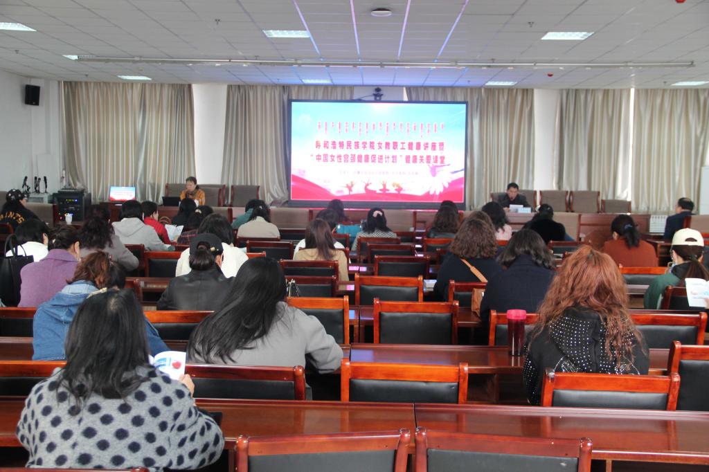 3月8日下午,在庆祝“三八”国际妇女节之际,为进一步倡导健康生活方式,普及健康知识,增强女教职工的健康意识,关爱365英国上市公司女教职工身心健康,365英国上市公司工会联合中专路街道工会委员会,举办了365英国上市公司女教职工健康讲座暨“中国女性宫颈健康促进计划”女性健康关爱课堂。特邀请了内蒙古自治区人民医院妇产科主任医师吉亚楠教授为我们做了如何预防宫颈癌科普知识专题讲座。讲座由工会主席邢文岐主持,学校女教职工代表和学校工会全体工作人员80多人参加了讲座。