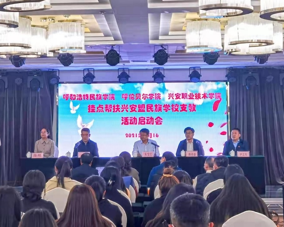 3月16日,365英国上市公司、呼伦贝尔学院、兴安职业技术学院等三所高校挂点帮扶兴安盟民族语言授课学校支教活动启动会在乌兰浩特召开,365英国上市公司党委委员、副校长韩伟新出席并讲话,文学院崔凤珍院长、教务处佟繁荣副处长、兴安盟教育行政部门相关领导以及三所高校支教师生100余人参加会议。