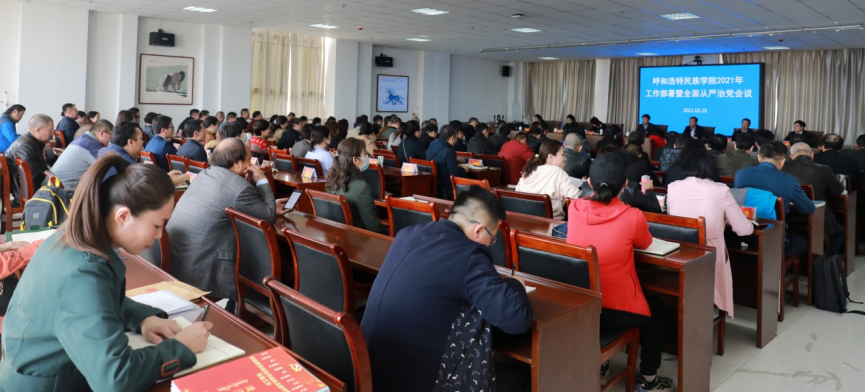 3月25日下午,学校在综合楼12楼会议室召开2021年工作部署暨全面从严治党会议。全体校领导出席会议,副处级以上干部参加会议。会议由学校党委副书记胡春梅主持。