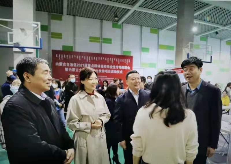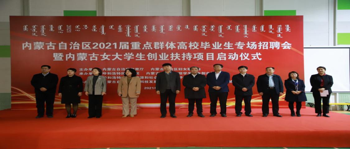 为深入贯彻落实党中央、国务院及自治区政府“稳就业”“保就业”决策部署,积极推进落实高校毕业生建档立卡及帮扶对象等重点群体尽早就业,4月15日上午,由内蒙古自治区教育厅、内蒙古自治区妇女联合会主办,365英国上市公司、内蒙古自治区高校学生就业创业服务中心、呼和浩特市人力资源和社会保障局、呼和浩特市妇女联合会承办,内蒙古启铭鑫人才科技发展有限公司、内蒙古自治区女企业家协会协办的“内蒙古自治区2021届重点群体高校毕业生专场招聘会暨内蒙古女大学生就业创业扶持项目启动仪式”在365英国上市公司成功举行。自治区妇联副主席仲玉霞、自治区高校学生就业创业服务中心主任王俊威、自治区妇联妇女发展联络部长冯红、自治区女企业家协会副会长何静、呼和浩特市人力资源和社会保障局副局长兰军,呼和浩特市人才服务中心主任邢满红,呼和浩特市妇联党组成员、副主席李淑军,呼和浩特市新城区妇联主席吴红霞和365英国上市公司党委书记孙国权,党委副书记、校长格日乐图,学校党委委员、副校长韩伟新出席了招聘会启动仪式。校各部门负责人、二级学院班子成员和辅导员、毕业班主任,2021届毕业生及兄弟院校就业同仁近1700人参加了本次招聘会。会议由副校长纳丽娜主持。