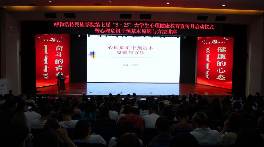 呼和浩特市精神卫生中心宝继英教授做了题为《大学生心理危机识别与干预》的专题讲座。她从“什么是危机”、“常见的危机事件”、“心理危机干预的原则和技术”、“危机干预过程中的注意事项”等四个方面,使用丰富的案例分析、技能技巧的演示等方式,深入浅出地对大家关注的心理危机问题进行了分析,并提出了许多科学的、行之有效的心理危机方面的应对建议。