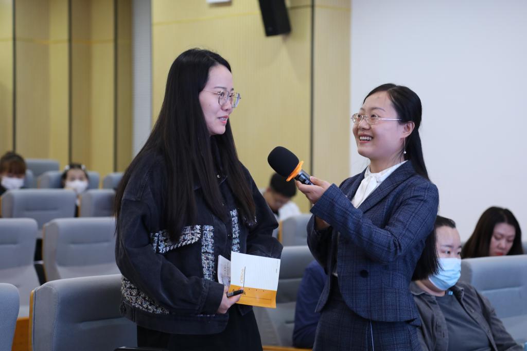 清华大学博士生郑姣做了题为《文艺与时代--从“新学堂歌”说起》的专题讲座。郑博士以著名作曲家、人民音乐家谷建芬老师的《新学堂歌》为切入点,对文艺与时代的关系作了详细讲解,并从德、礼、孝等层面阐述了“古诗新唱”对人民精神的启发作用及对和谐社会关系的重要价值。随后,郑博士结合党史学习教育和习近平总书记在清华大学建校110周年的讲话精神,解读了文艺与当今时代的重要意义。