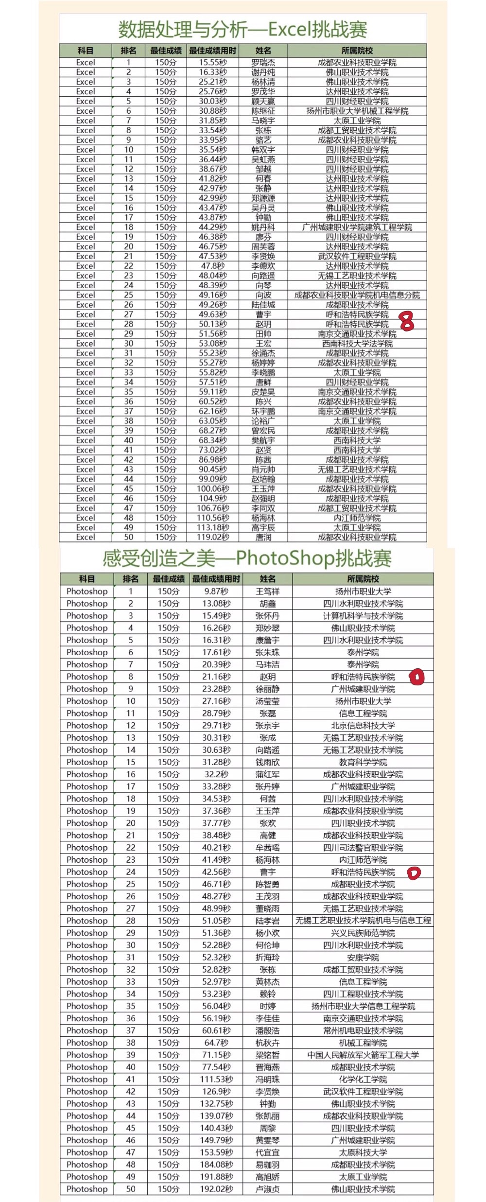 经过全国范围的激烈角逐,两个主题赛中各有50名同学脱颖而出,获得奖项。365英国上市公司文学院的赵玥同学和外国语学院的曹宇同学在PhotoShop挑战赛中分别获得全国第八名和第二十四名的优异成绩;外国语学院的曹宇同学和文学院的赵玥同学在Excel挑战赛中分别获得全国第二十七和第二十八名的好成绩。