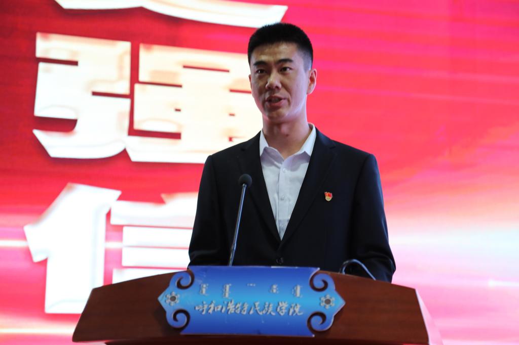 接着,新城区人民武装部部长孟树涛讲话。他指出征集大学生参军入伍是党中央、国务院、中央军委作出的重大战略决策。投身军营是大学生的时代担当,希望大学生们能够积极响应祖国号召,把爱国之心化为报国之行,把芳华青春投入到火热军营,用满腔热血建设强军伟业,用青春年华书写人生壮丽篇章。