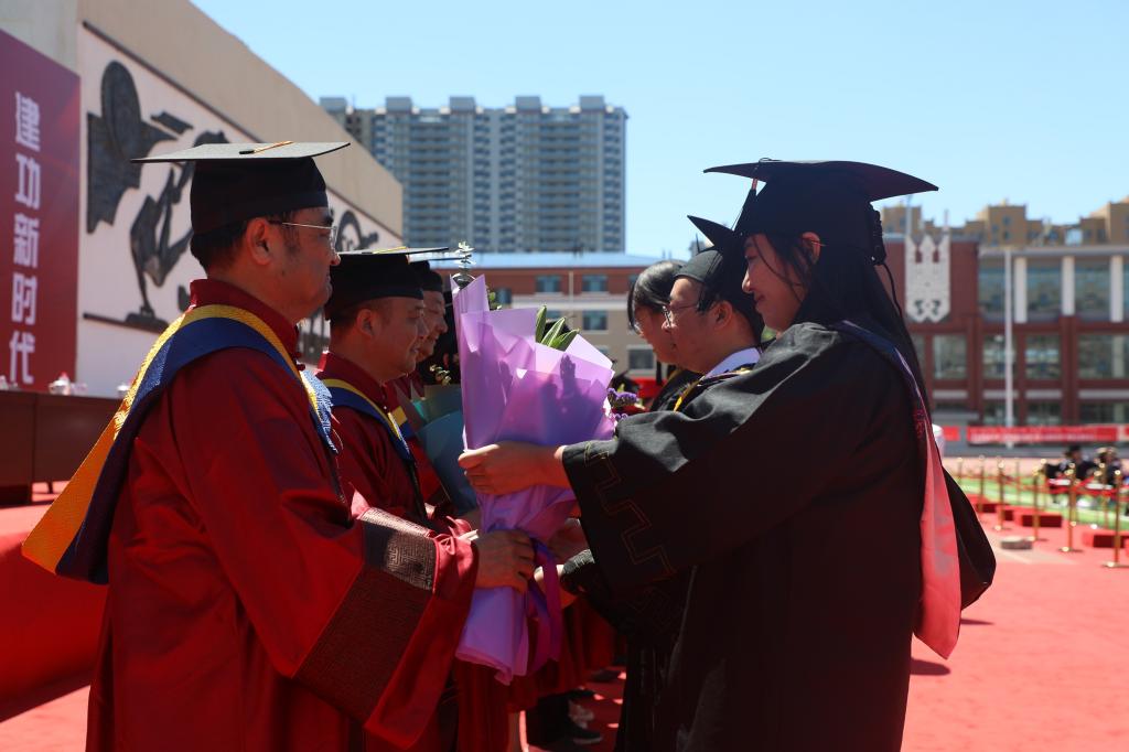 2021届毕业生代表向校领导、老师们敬献鲜花