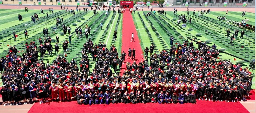今年毕业季恰逢中国共产党成立100周年。伴随着全体师生齐唱《歌唱祖国》国旗队入场,大家用歌声尽情表达将“小我”融入“大我”的爱国情怀。10时许,伴随着庄严的国歌声响起,全体与会人员面向国旗,肃立注目。