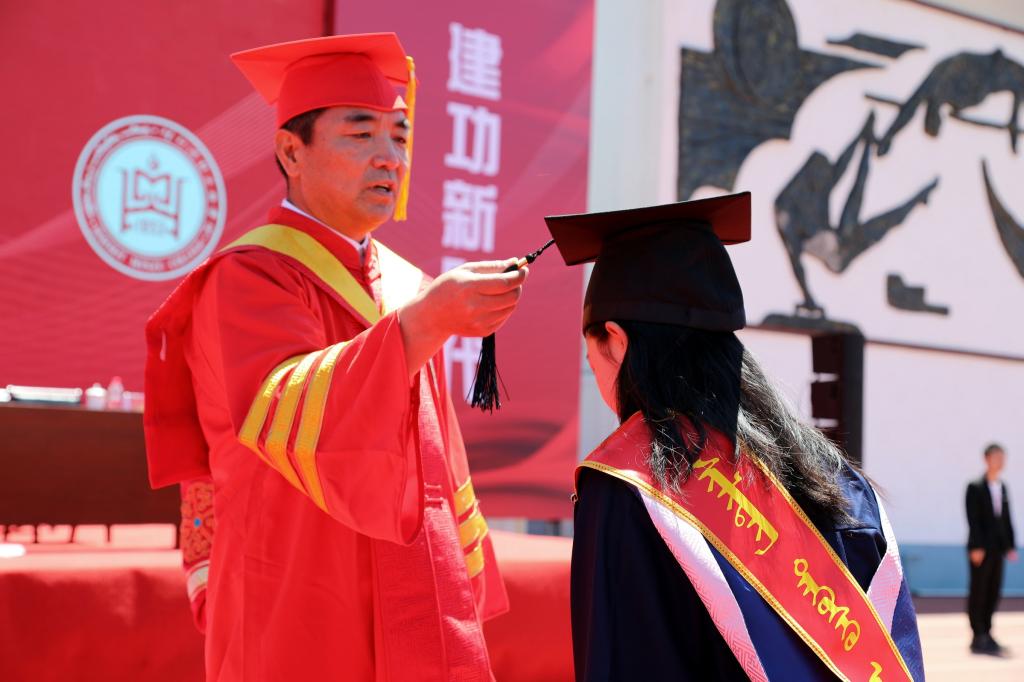 毕业典礼上,教务处副处长哈斯额尔德尼宣读了学校本专科生毕业及学士学位授予情况。韩伟新副校长宣读了《关于表彰2021届优秀毕业生的决定》。校领导为优秀毕业生颁奖。
