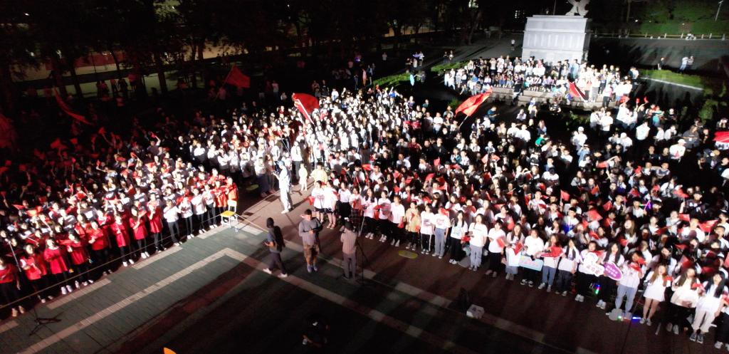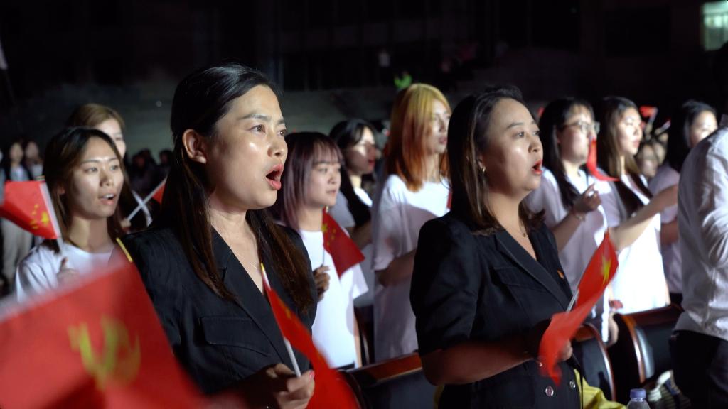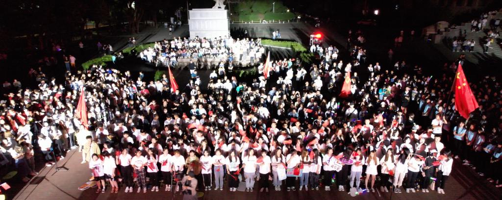 活动中,师生们手中挥舞着小红旗,用嘹亮的歌声抒发对党、对祖国的热爱,用青春的激情和昂扬的姿态为党的百年华诞献上自己的祝福,为祖国繁荣富强喝彩,真切表达了共同谱写奋斗、奉献、报国的青春之歌的豪情壮志。