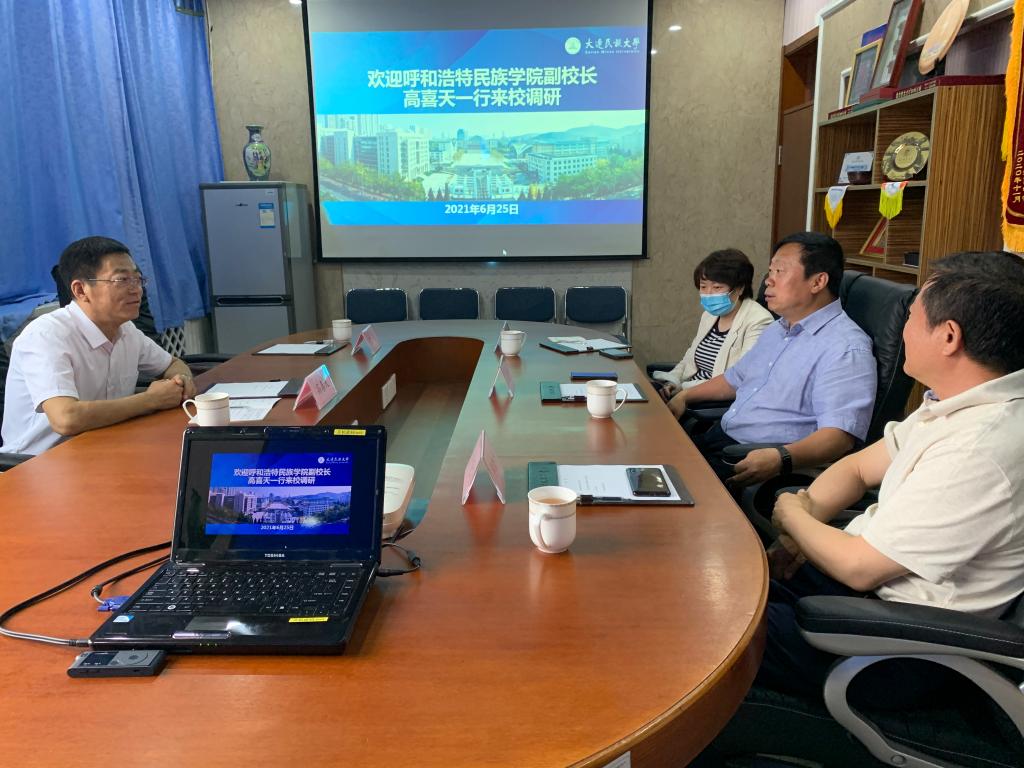 6月25日,副校长高喜天带队赴大连民族大学进行调研,并就“十四五规划”编制、国际国内交流合作等工作情况与大连民族大学副校长段晓东进行了会谈。同时,双方就建立校际全面合作关系达成一致意见,并在学科建设、人才培养、科学研究、教师交流等方面进行了深入探讨。