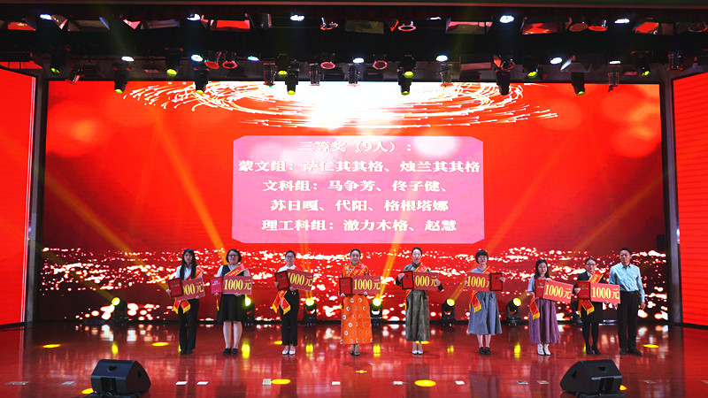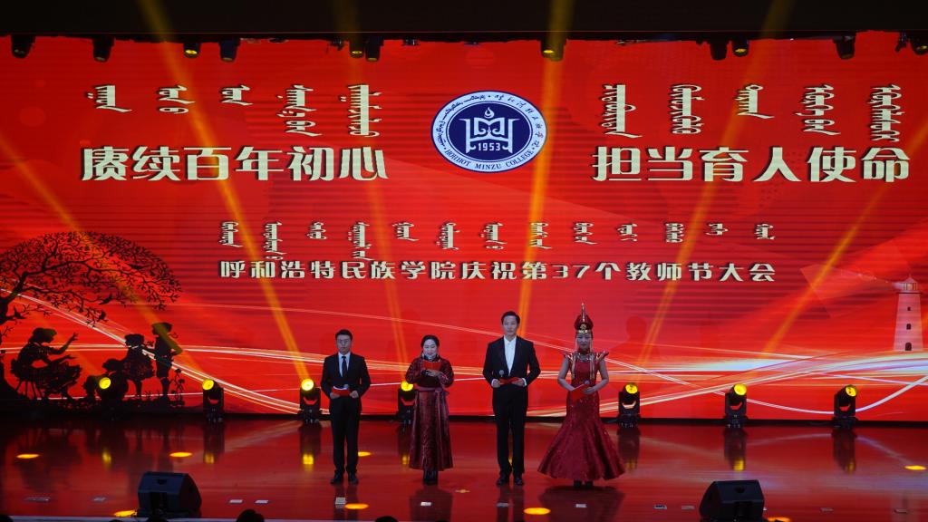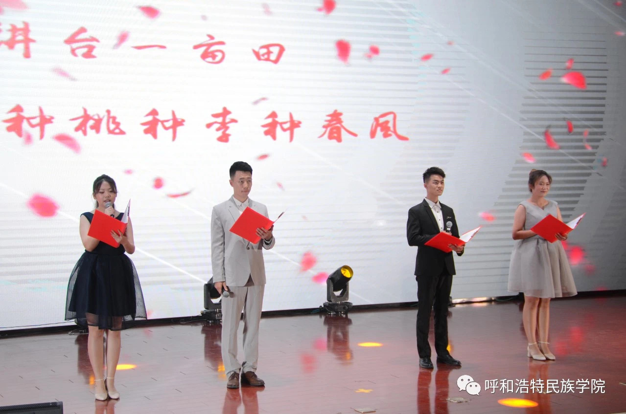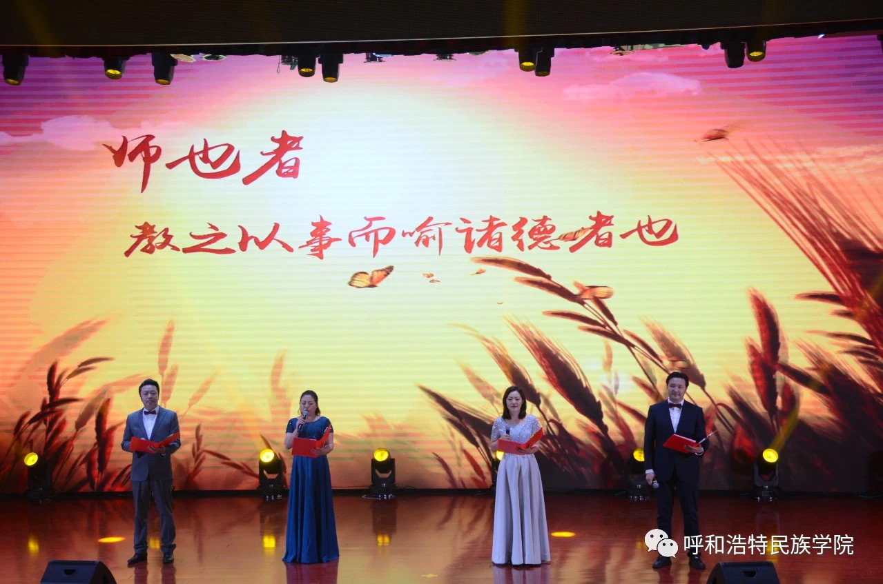 无伴奏小合唱《美丽的草原我的家》、女声独唱《金翅鸟》、男女生重唱《爱在内蒙古》等节目,博得全场观众热烈的喝彩和掌声。同学们声情并茂的诗歌朗诵,传递了同学们对老师的感恩之情;由老师代表带来的《习近平总书记教育金句》朗诵,表达了民院教师以生为本、爱岗敬业、潜心育人,甘为人梯的职业理想。