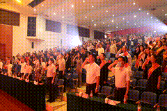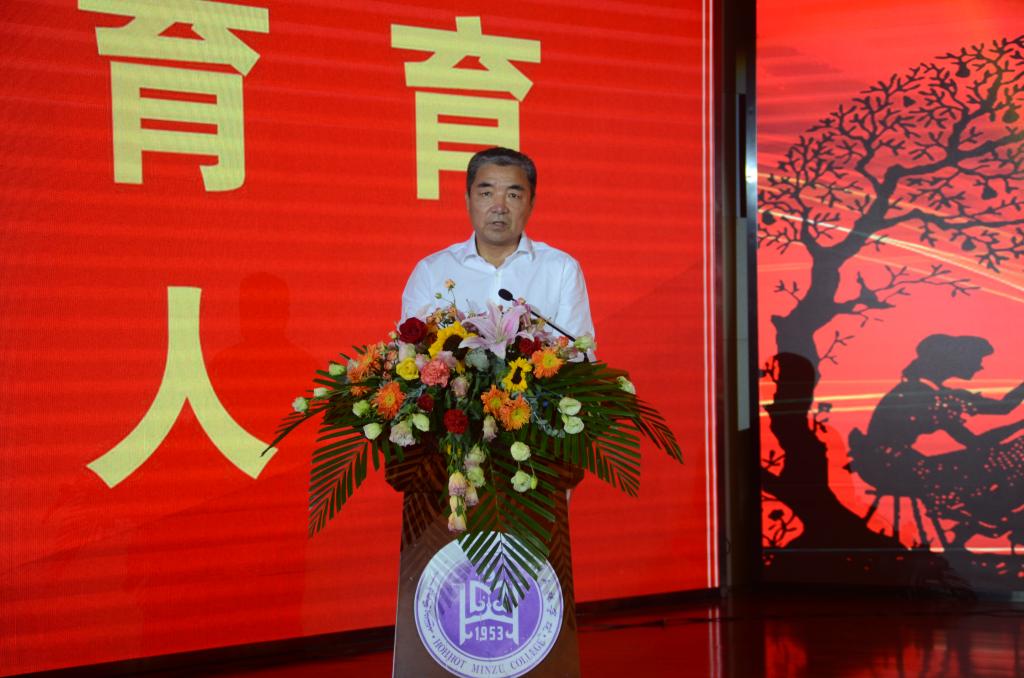 会上,全体教职工集体宣誓,发出了“不忘立德树人初心,牢记为党育人、为国育オ使命,忠于党的教育事业,坚决贯彻落实党的教育方针,坚守教师职业道德,积极探索新时代教育教学方法,不断提升教书育人本领,为培养德智体美劳全面发展的社会主义建设者和接班人作出新的更大贡献。”的铿锵誓言。会场鸦雀无声,唯有铮铮誓言传达着民院教师践行争做“四有”好老师,培养出德智体美劳全面发展的社会主义合格建设者和接班人的共同心声,将大会推入高潮。